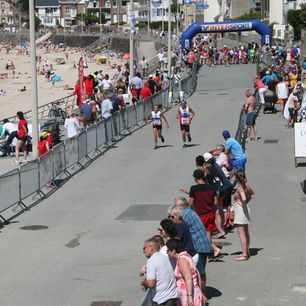 J'ai bien entendu coché le 14 juillet dans mon calendrier car cette date, et cette course magnifique, correspondent au début de ma préparation pour les championnats du monde car elle est à 7 semaines de l'objectif, l'occasion de rechercher un peu de vitesse face aux meilleurs coureurs à pied bretons! Non seulement la digue du Val André est un lieu magnifique mais elle touche la plage du golf, où j'ai passé une bonne partie des étés de mon adolescence! Sans parler des nombreux tournois de tennis de table des fameux mercredis soirs à Pléneuf!